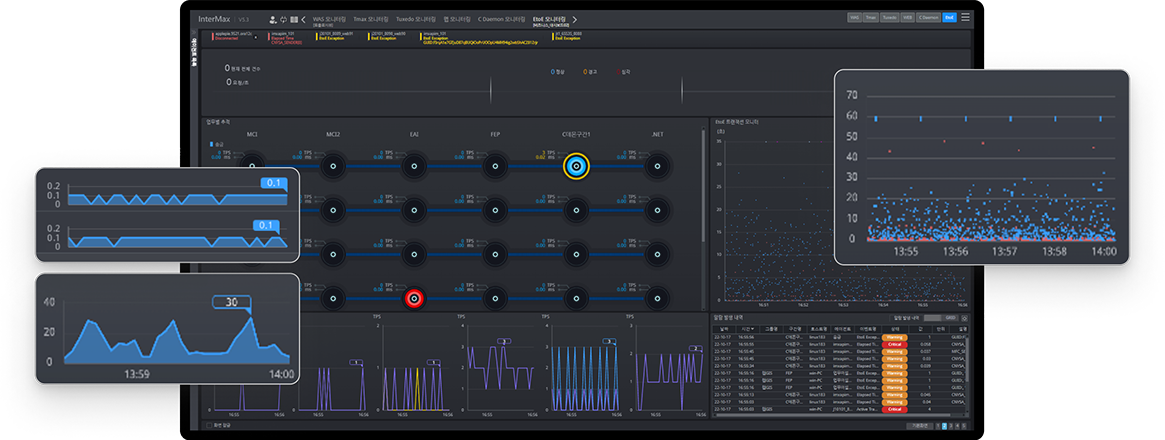 InterMax는 금융 / 공공 / 통신 / 제조 등 대규모 시스템 관제 시에도 수평적 확장이 가능한 안정적이고 검증된 아키텍처로 설계되었습니다.