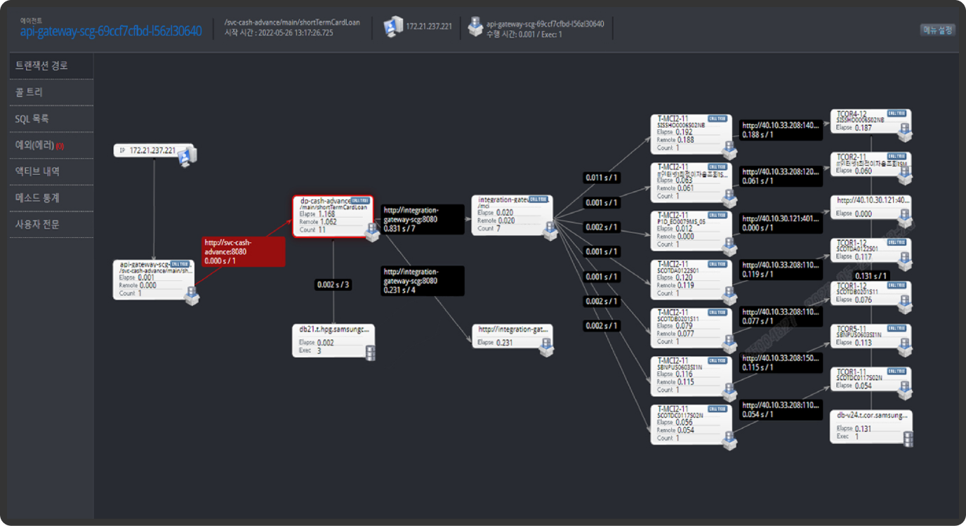 실시간 서비스 호출 관계 및 수행 현황 종합 상황판 제공